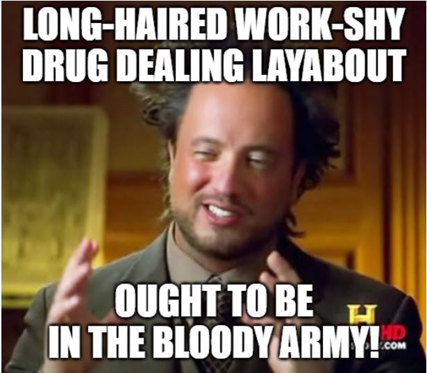 This track flutters about for a full fifteen minutes rising and falling, bright then dark, and then towards the end more weird samples ensue including one of my all-time favourites, “… long-haired, work-shy drug dealing layabout ought to be in the bloody army!”